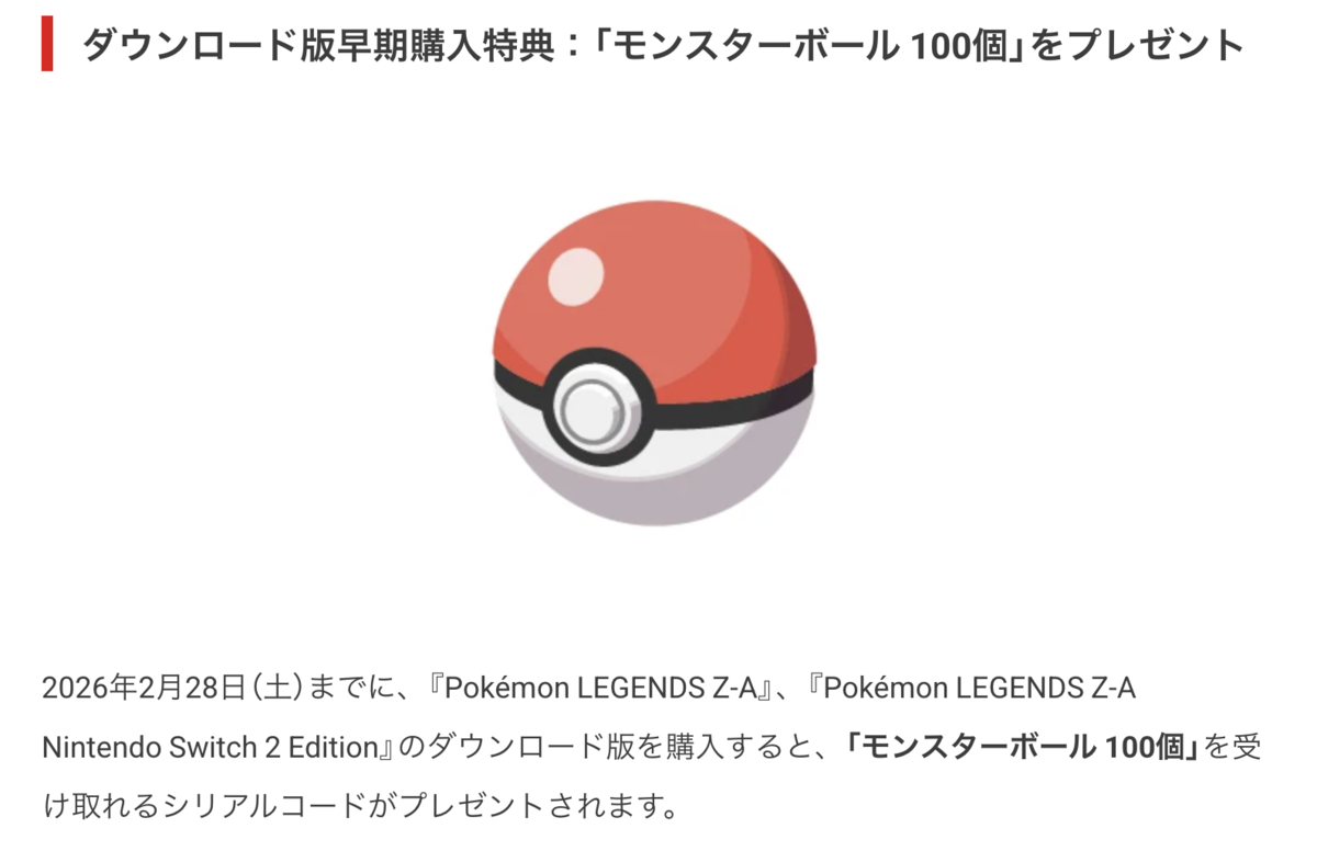 またモンスターボール100個のシリアルコードがプレゼントとなります。